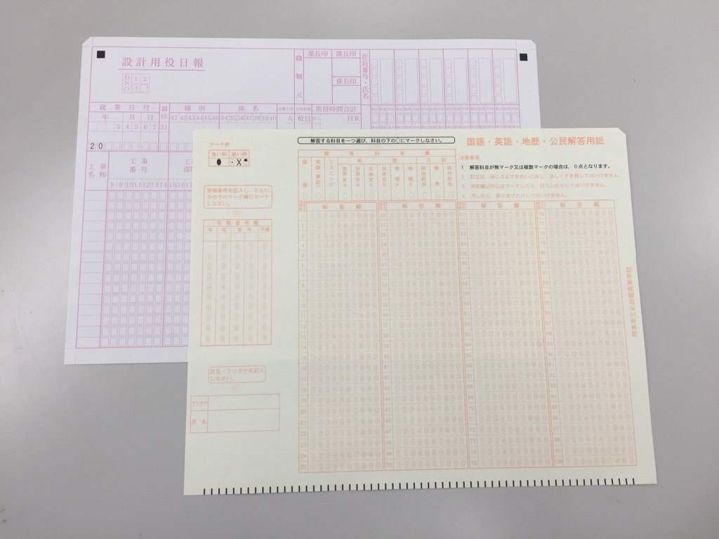 各種納付書・テスト系マークシート商品など 機械装置で情報を読み取るために高い印刷濃度と断裁精度が必要です。